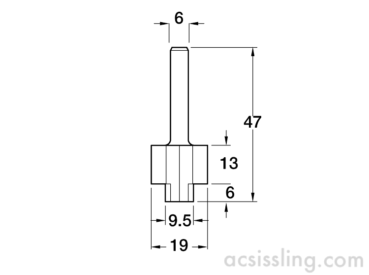 19mm dia with a secondary groove cutter 9.5mm dia x 6mm deep.